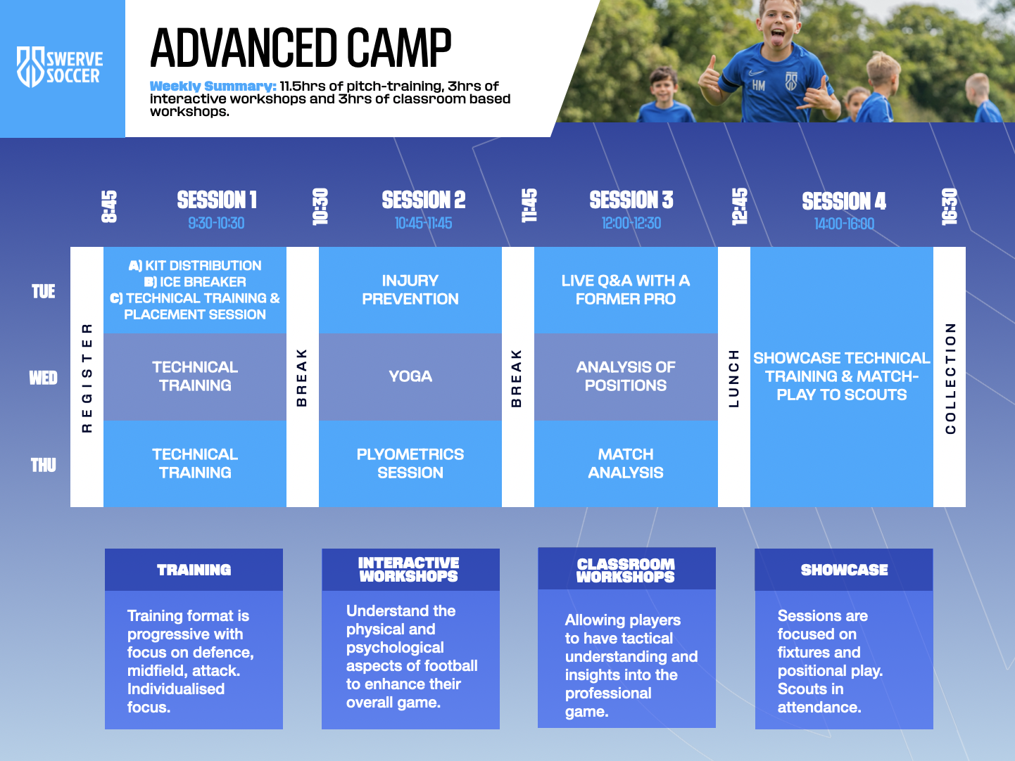The course is hosted by Swerve Soccer’s performance team, ensuring the highest coaching level. Please use the eligibility checker before booking.